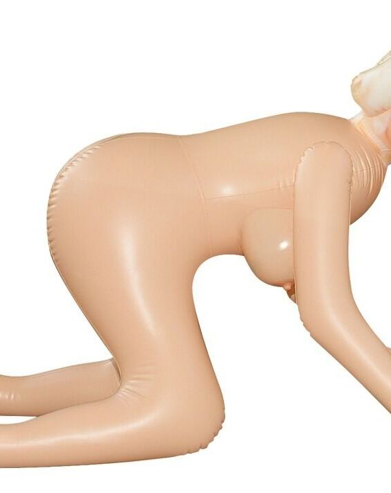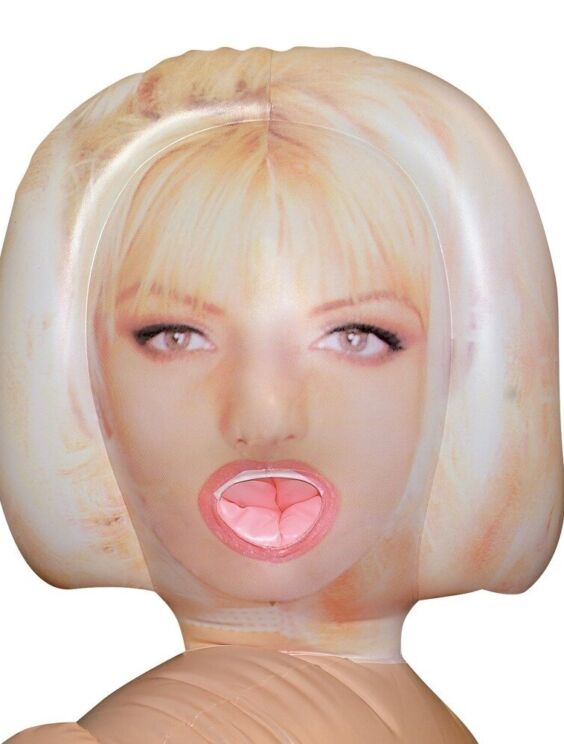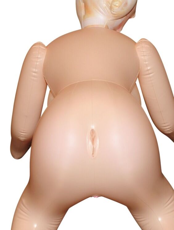Deze prachtige, knielende palindroom met haar bedrukte gezicht en haar heeft 3 uitnodigende, strakke liefdesgaatjes. Haar haar is apart opblaasbaar voor nog meer volume.