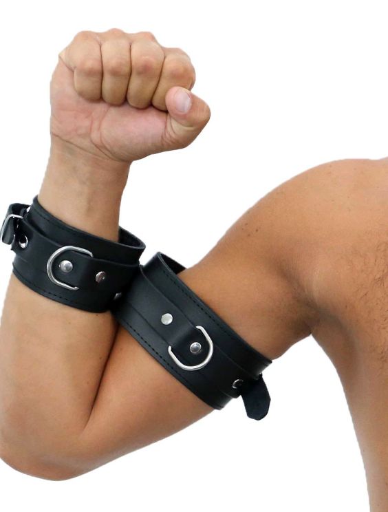 Complete set dubbele boeien voor de armen en polsen. Maten voor de armen zijn 7 cm t/m 10 cm en voor de polsen 6 cm t/m 8 cm. Prachte set zodat u weinig kunt doen tegenover uw meester...