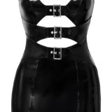 BLACK LEVEL GEIL STRAK ZWART LAK VINYL GESP JURK