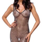 Een nauwsluitende mini jurk van Cottelli PARTY gemaakt van extravagant gaas dat helemaal bezaaid is met fonkelende strass-steentjes. De halslijn en zoom zijn zorgvuldig afgewerkt met zwarte biezen. Zacht en behaaglijk voor een hoog draagcomfort.