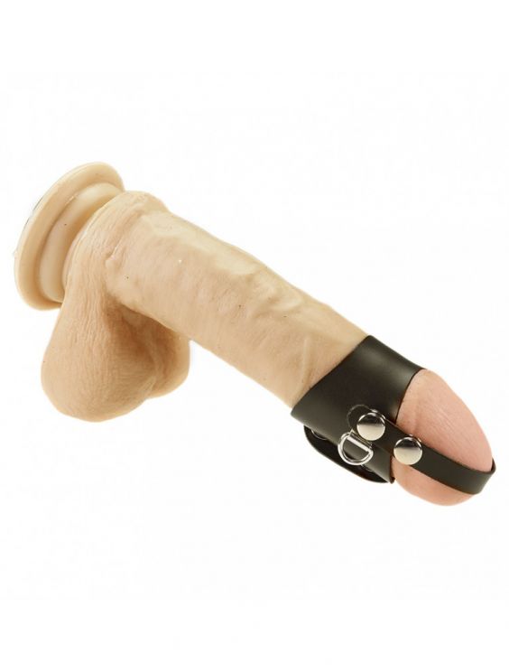 Zwarte eikel cage in leder met stevig bevestigde D-ring