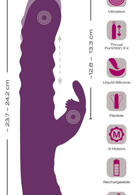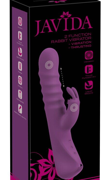 De handige 2 Function Rabbit Vibrator van Javida met stuwende functie verwent tegelijkertijd van binnen en van buiten! De herhaaldelijk stuwende gegroefde schacht met vibro-tip stimuleert de vagina diep. Tegelijkertijd richt de zachte vibro-bunny zich met plezier op de clitoris. Dubbele orgastische kracht met één druk op de knop!