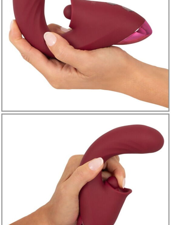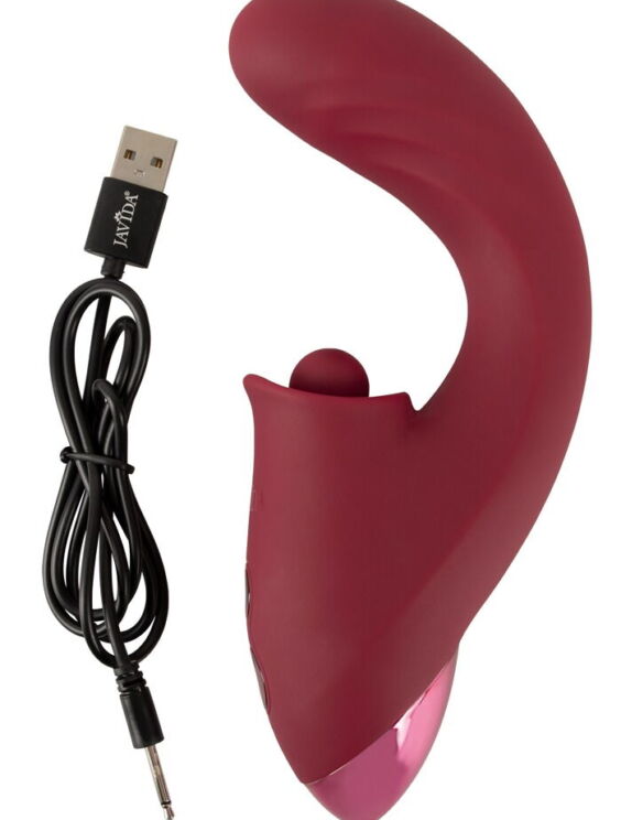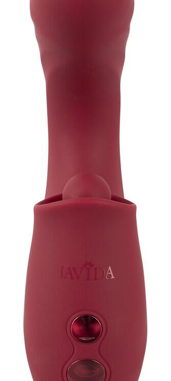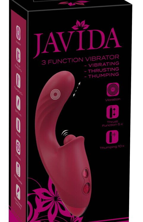 De handige, lichtgewicht 3-functie vibrator van Javida met stoot- en tikfunctie verwent tegelijkertijd van binnen en van buiten! Zijn optimaal gebogen gegroefde schacht bereikt gemakkelijk de G-zone in de vagina. En zijn uitpuilende vibro-tip zal daar keer op keer met plezier stoten. Tegelijkertijd richt de zachte, kloppende en pulserende klopper zich op de clitoris voor stimulatie. Dubbele en driedubbele orgastische kracht met één druk op de knop!