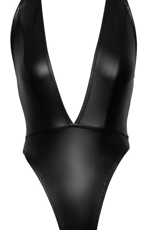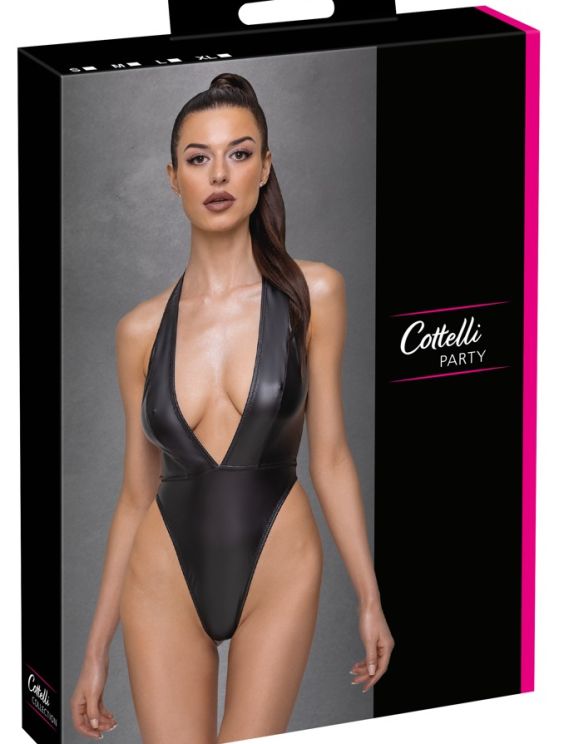 Schaars gesneden rio-string body in een edele zwarte matte look van Cottelli PARTY, die zacht en elastisch dicht op de huid aansluit. Met adembenemend diep decolleté en vrije rug. Halternek met drukknoopsluiting. Extra hoge beenuitsnijdingen laten de billen en benen goed tot hun recht komen. De drukknoopsluiting in het kruis is zowel praktisch als verleidelijk.