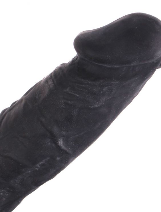 Zwart kleurige zeer realistisch uitziende en aanvoelende dildo met testikels en een stevige zuigvoet