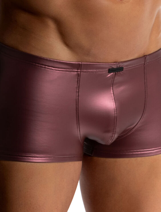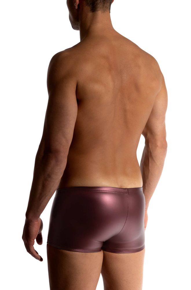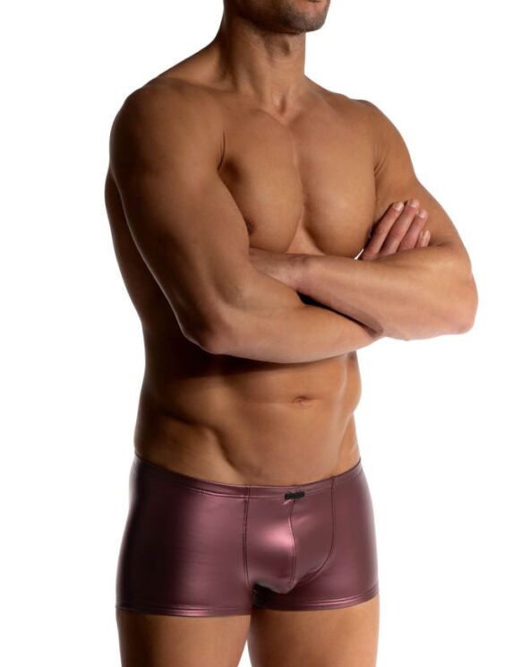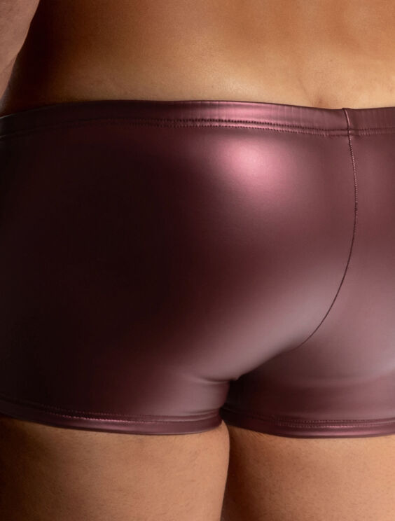 ultra sexy en erotische heren boxer in een stevig, aangenaam en elastisch metallic bordeaux wetlook met een push up effect vooraan en voor je billen!