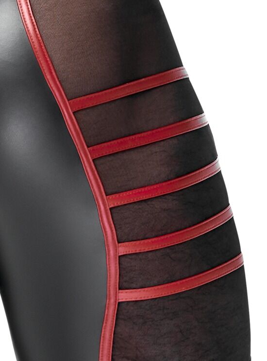 aansluitende herenboxer short in zwart mat stevig, aangenaam en elastisch wetlook met contrasterende rode strepen, mooie powernet gaasstof inzetstukken aan de zijkanten