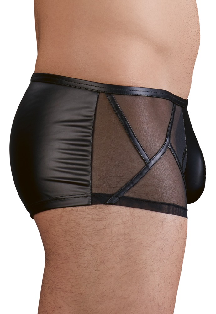 Zwarte boxer in aangenaam glad en zacht aansluitend wetlook en stevig transparant powernet