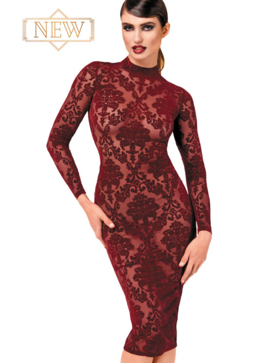 Ontwerp: Met lange mouwen, een opstaande kraag met delicate haak-en-oogsluitingen en een sensuele open rug combineert deze jurk verfijning met een vleugje allure. De midi-lengte voegt elegantie toe en creëert een gepolijst en sierlijk silhouet.