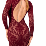 Pasvorm: De lichtgewicht tule is afgestemd op het lichaam en past zich aan je rondingen aan, terwijl comfort en bewegingsvrijheid behouden blijven. De open rug en gestructureerde kraag benadrukken vrouwelijke lijnen en versterken het algehele silhouet met verfijning.