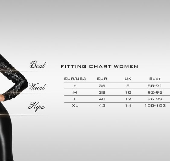 Zeer elastische overall met lange mouwen in nauwsluitende snit in zwarte edele powerwetlook. De praktische 2-wegritssluiting loopt van het decolleté via het kruis naar een naakte driehoek boven de kont en nodigt uit tot amoureuze handelingen en toegangen.