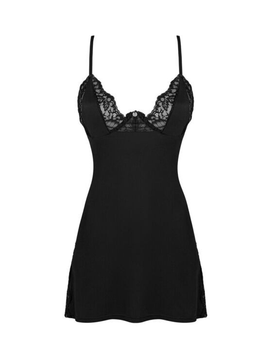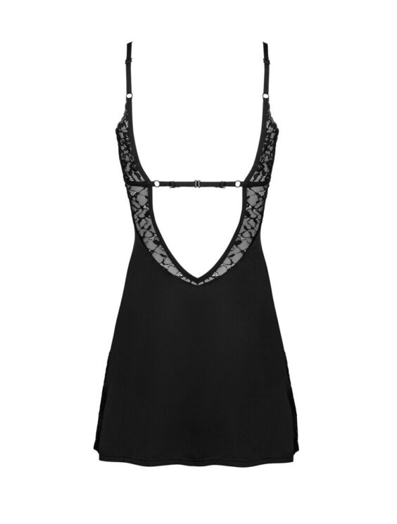De verleidelijke Bellastia negligé met string van Obsessive maakt indruk met zijn geraffineerde uitsnede aan de achterkant. De cups hebben een beugel voor een ideale ondersteuning. De cups en de ruguitsnijding zijn gemaakt van elegant kant, wat deze negligé tot een delicate klassieker maakt.