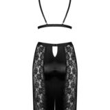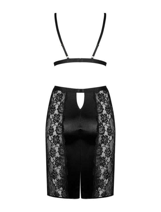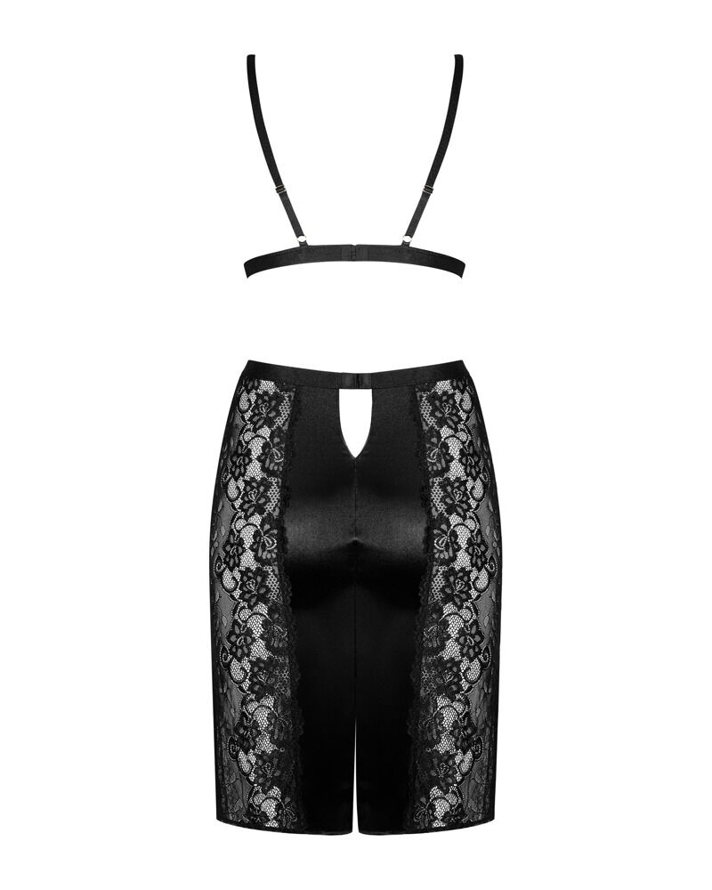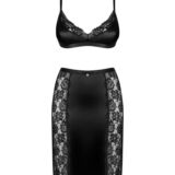 Blanita zwarte bh en rok set van Obsessive gemaakt van stretch satijn en fijn kant. Zacht en elastisch voor maximaal comfort. Zachte beha met haakjessluiting op de rug, de bandjes zijn verstelbaar. De knielange, nauwsluitende rok heeft een kleine split en een haaksluiting achter.