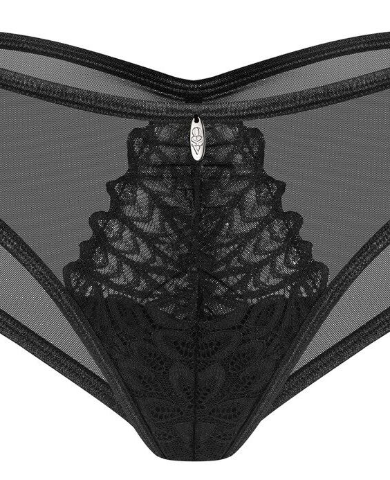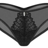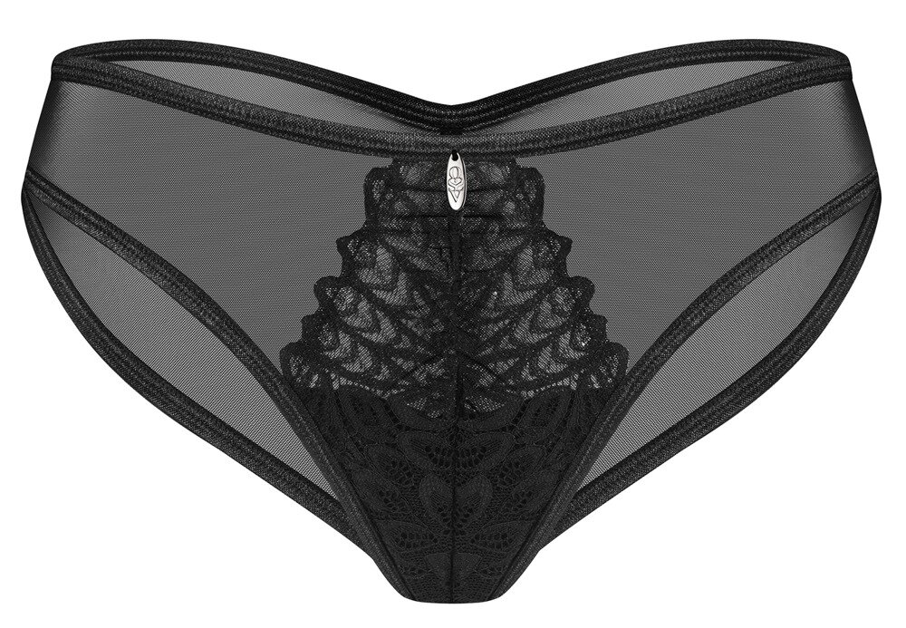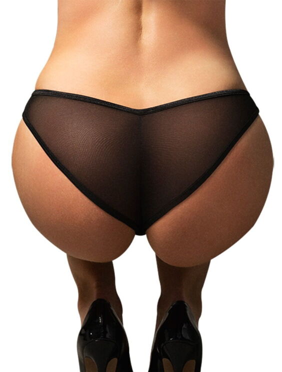 De Donarella slip van Obsessive heeft een verleidelijk design en is gemaakt van transparant zwart materiaal. De voorkant is voorzien van een rijkelijk geborduurd inzetstuk en een klein decoratief element. De achterkant heeft ruches. De slip is zacht en rekbaar voor een extreem comfortabele pasvorm.