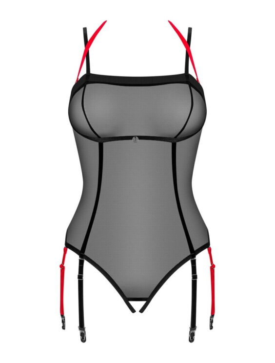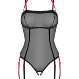 De semi-transparante body Gladez van Obsessive ontbloot je borsten snel dankzij de afneembare halter. De jarretelbandjes zijn ook afneembaar en maken de body extreem veelzijdig. Het kruis is uitnodigend bloot voor seksuele exploratie.