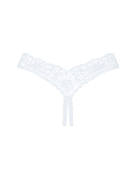 Witte Heavenlly kruisloze string van Obsessive gemaakt van zacht, rekbaar kant. Uitnodigend open bij het kruis. De iets hogere snit benadrukt de sexy bips en benen.