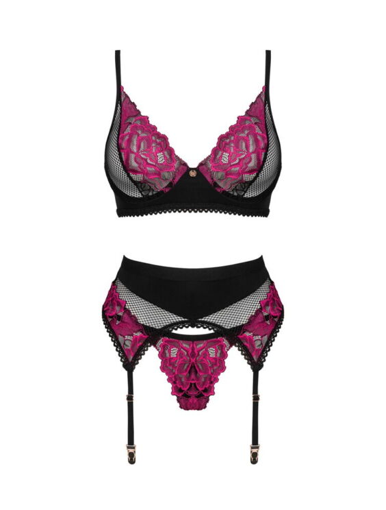 OBSESSIVE ROSENTY 3 DELIG JARRETEL LINGERIE SETJE