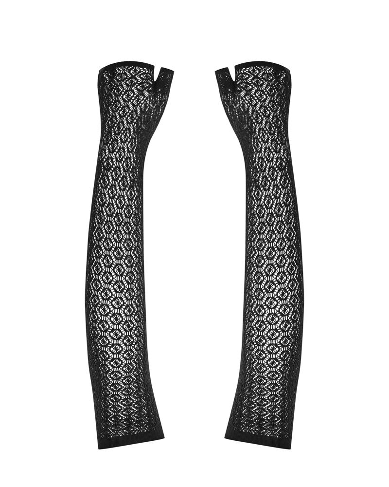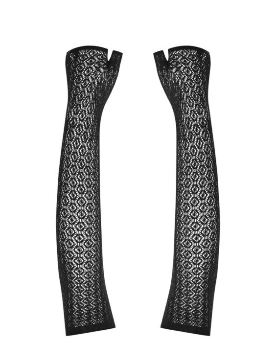 Zwarte elegante handschoenen van Obsessive in een extravagante mesh design look. Elastisch en zacht om aan te raken. De lange manchetten zijn gemaakt met alleen duimen. Het speciale extraatje voor vele outfits!