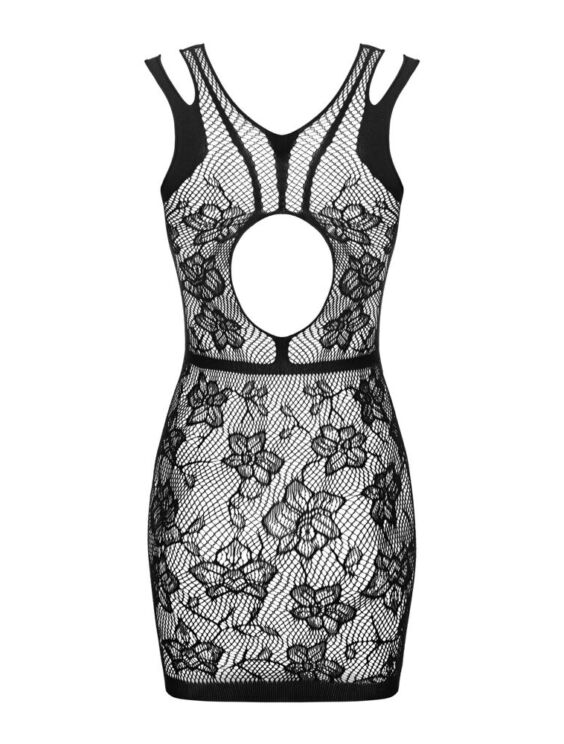 OBSESSIVE ZWARTE NET JURK MET ELEGANT DESIGN