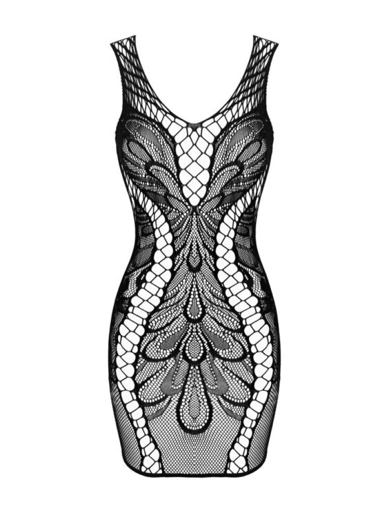 OBSESSIVE ZWARTE NET JURK MET VROUWELIJK DESIGN