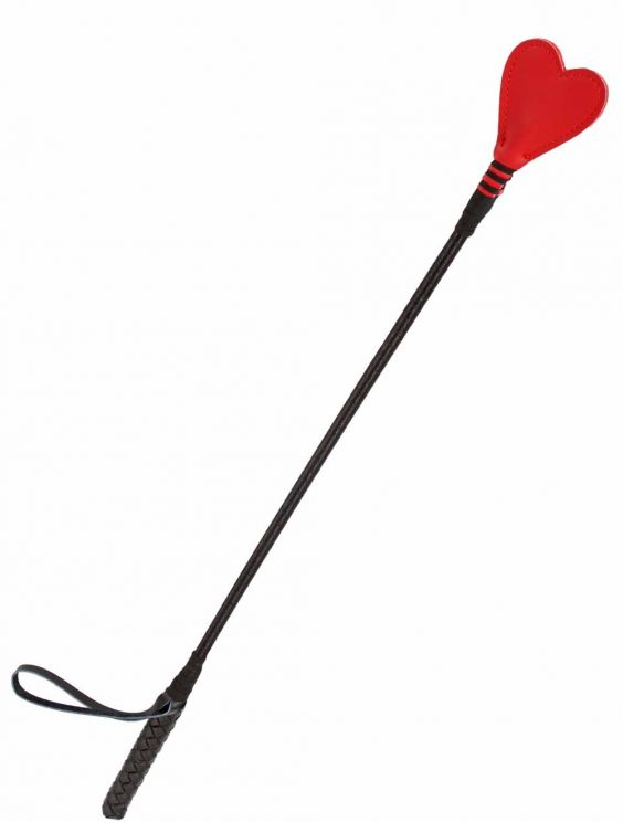 Stevige paddle in rood en zwart kunstleer met een gevlochten handgreep met pols loop