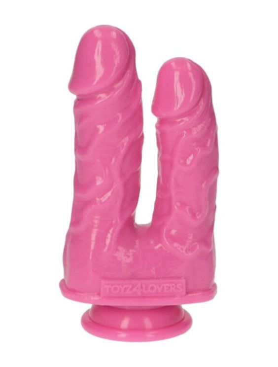 PINK FLEXIBEL PVC DUBBEL DILDO OP VOET