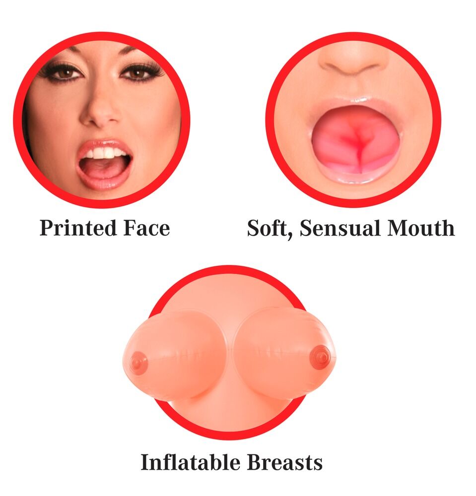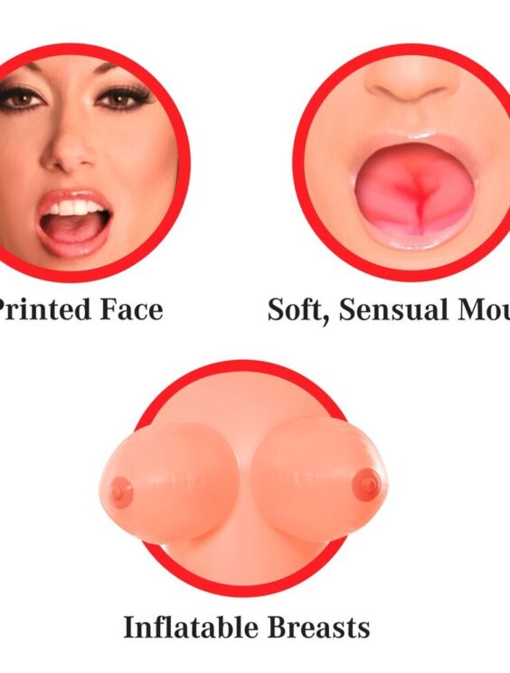 Opblaasbare liefdespop in staande en knuffelende positie. Haar voordelen zijn de grote borsten met harde tepels en de zachte, sensuele mond. Daarnaast heeft ze 3 spannende liefdesopeningen voor diepgewortelde verkenningen. Inclusief reparatieset.