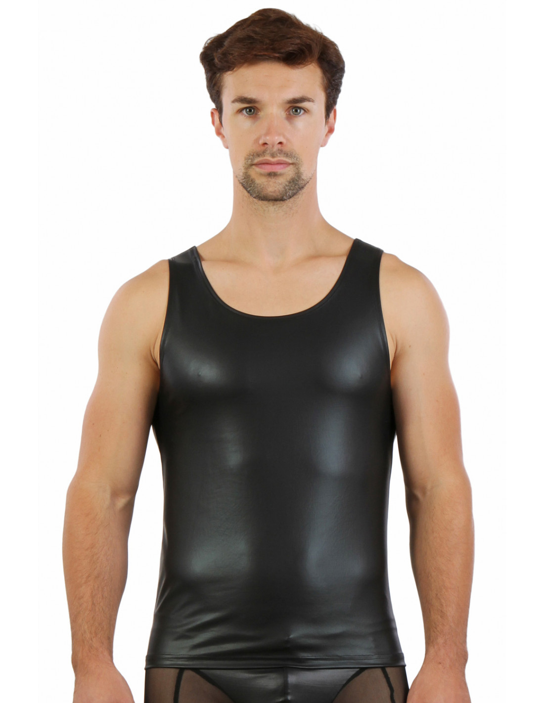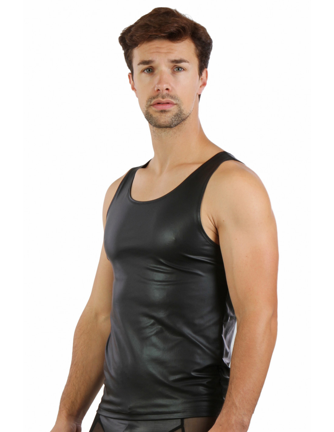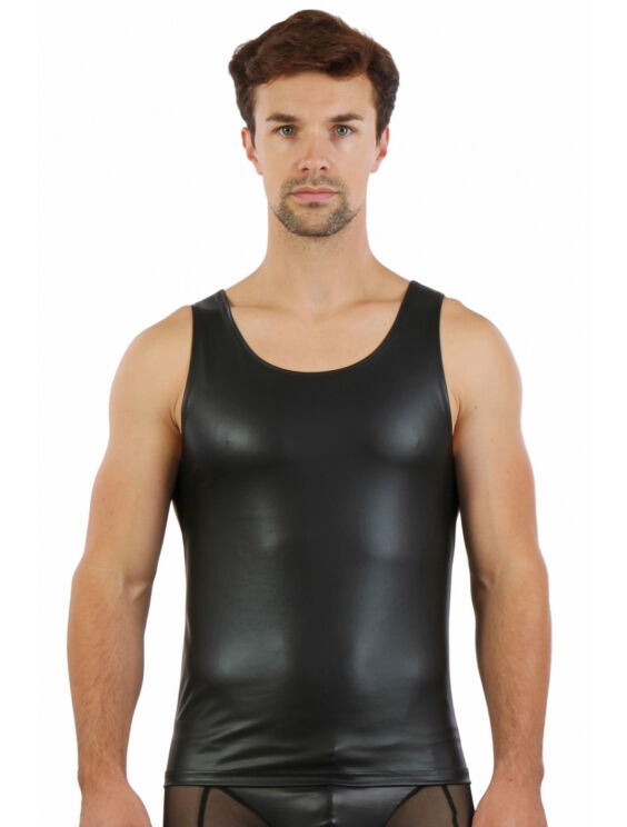 SEXY STOER FETISJ WEAR WETLOOK HEREN TANK SHIRT