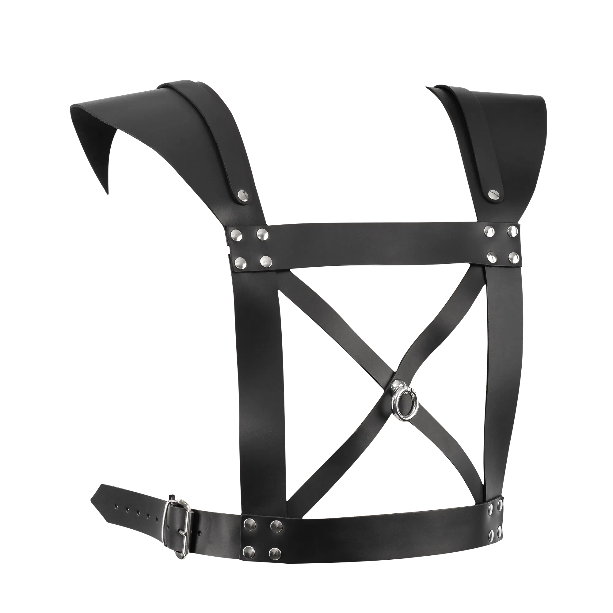 Dit mannelijk zwart heren borst harnas in Romeins gladiatorstijl is handgemaakt van echt, stevig tuigleder.