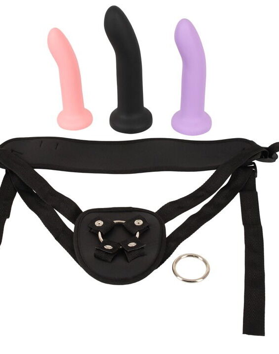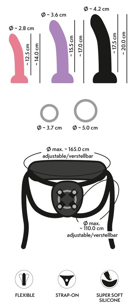 STRAP ON HARNAS SET MET 3 FLEXI SILICONEN DILDOS
