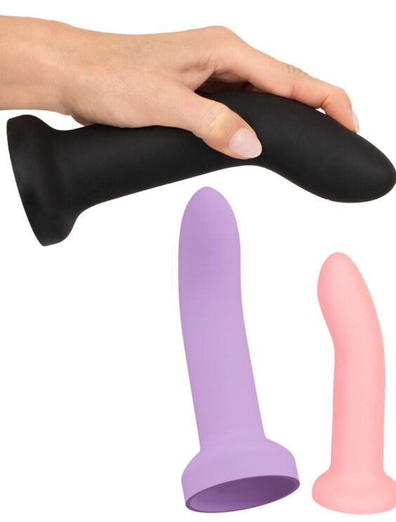 Vloeibaar siliconen dildo's met een ultrazacht oppervlak. Aangenaam stevig en toch mooi flexibel. Ideaal gebogen zodat de G-spot of prostaat gemakkelijk bereikt en gericht gestimuleerd kan worden. Voorzien van een sterke zuignap die zich stevig vasthecht op elk glad oppervlak voor handsfree plezier. 3 verschillende kleuren en maten: