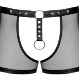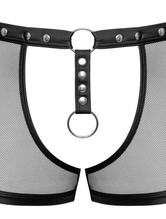 Volledig kruisloos zwart broekje van Svenjoyment in fijne netwerktransparantie met stijlvolle wetlook details en zilverkleurige accessoires. Zacht en elastisch rondom voor een hoog draagcomfort. Met een metalen cockring (Ø 3,9 cm) aan een verstelbare drukknoopband. De tailleband kan ook aan de voorkant worden versteld met drukknopen. Andere maten van cockringen zijn dus makkelijk te gebruiken...