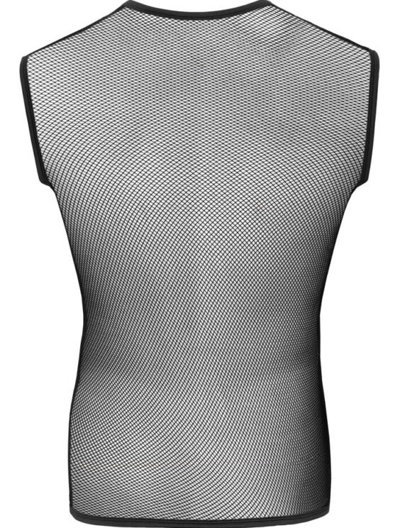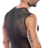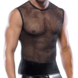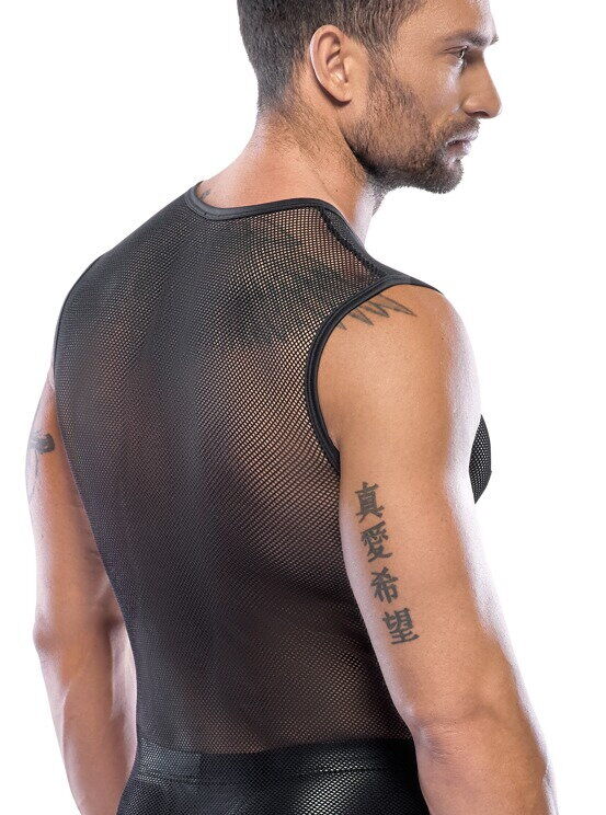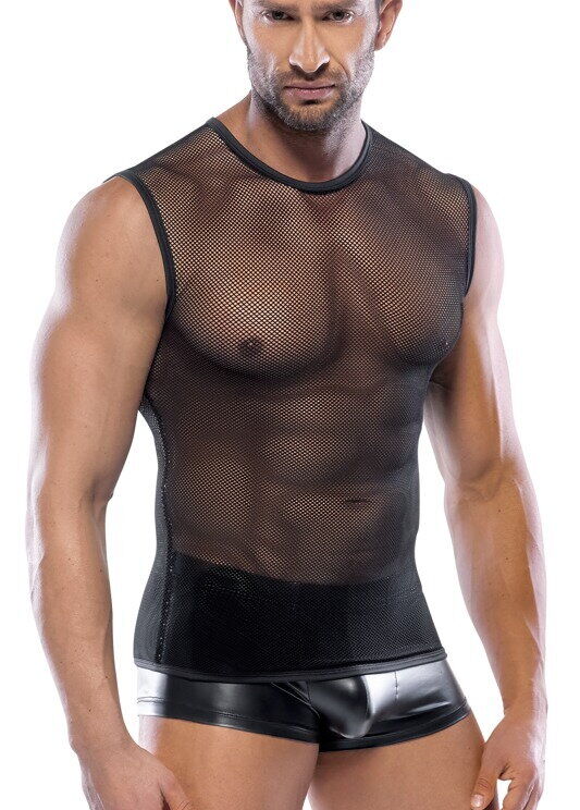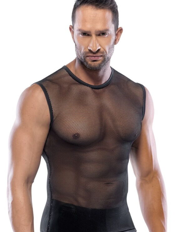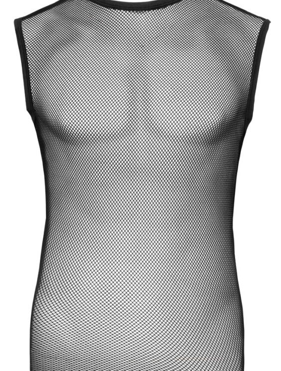 Met dit zwarte grove net shirt zijn bewonderende blikken er zeker, want huid en spieren komen sexy tot hun recht. Sluit lekker aan. Met ronde halslijn. Rondom gezoomd.