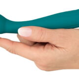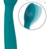 De aangenaam stevige siliconen vibrator is voorzien van een fluweelzacht oppervlak. Hij glijdt als vanzelf over de huid en is bijzonder gemakkelijk in te brengen. De vibratie- en knikfunctie zijn gecombineerd en kunnen in 10 verschillende standen worden geregeld. Handig met een druk op de knop aan het uiteinde van de vibrator.