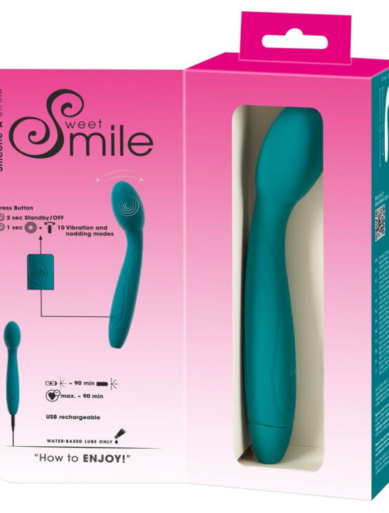 De superhandige, lichtgewicht vibrator met knikkende kop van Sweet Smile zal je verrukken met zijn perfect gebogen, uitgesproken massagekop. Niet alleen zijn de vibraties daar geconcentreerd, maar dankzij de knikfunctie beweegt hij ook heen en weer op een pulserende snelheid. Niet alleen de vagina en de G-zone worden heerlijk verwend. De zachte vibro-massagekop streelt ook alle andere hotspots op het lichaam. Perfect plezierpunt alleen of met z'n tweeën!