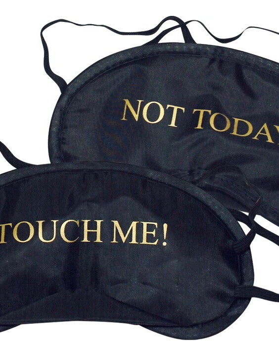Zwart, ondoorzichtig satijnen oogmasker, aan beide zijden bedrukt met een goudkleurige opdruk: TOUCH ME! en NOT TODAY! Zet het eenvoudig op afhankelijk van je stemming en geef aan of je in de stemming bent of niet...