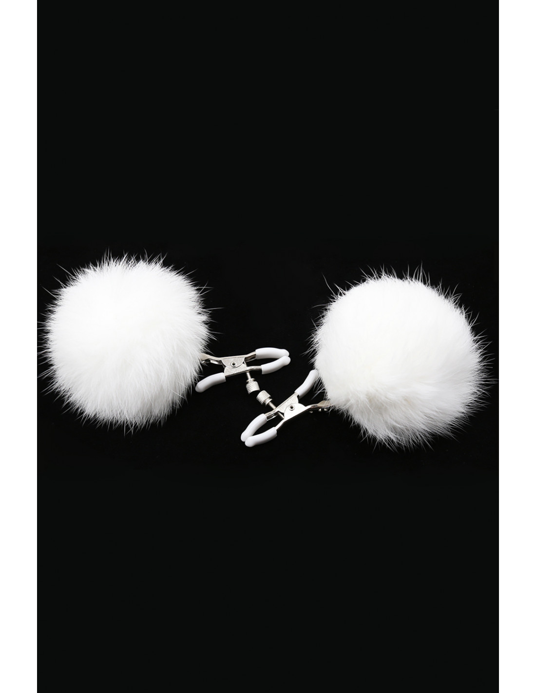 beide klemmen zijn gedecoreerd met helder witte peluche pompoms