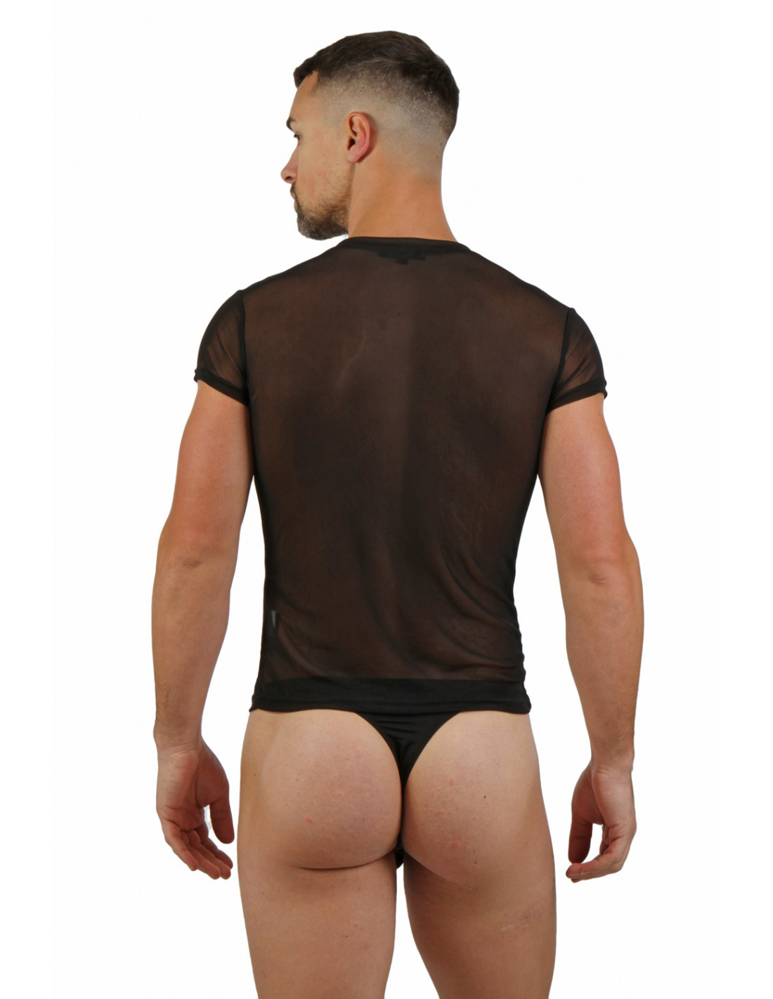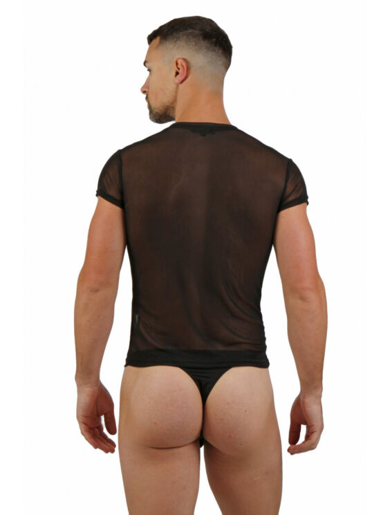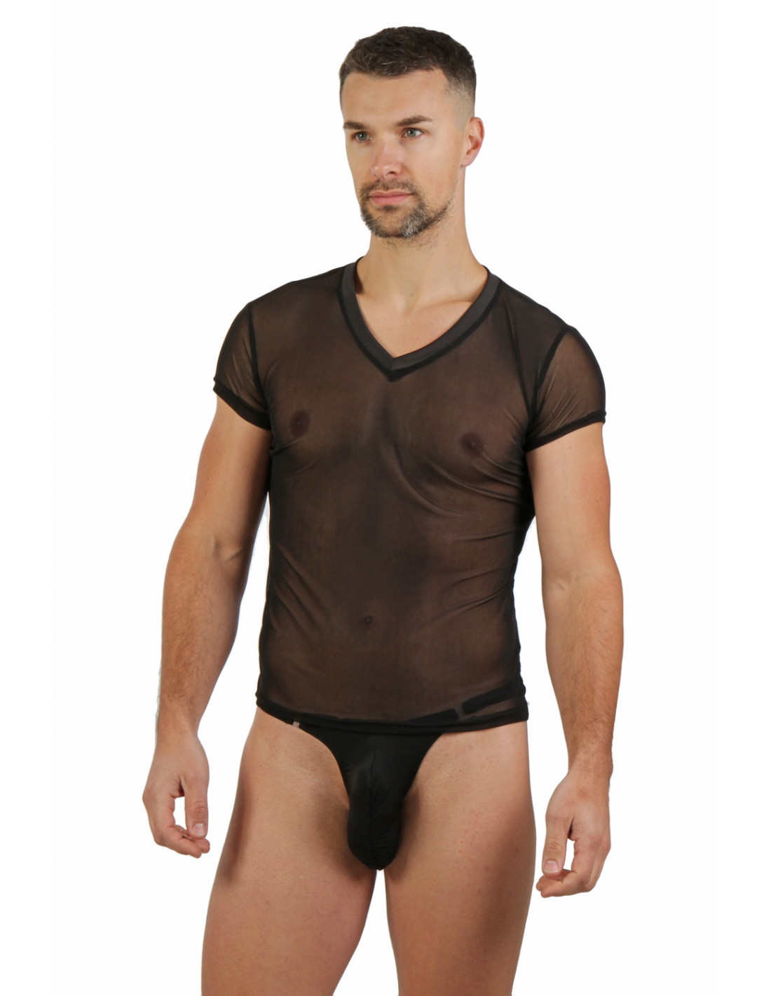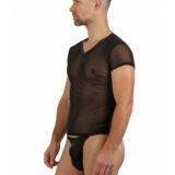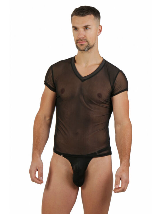 ZWART V HALS HEREN SHIRT IN TRANSPARANT MESH