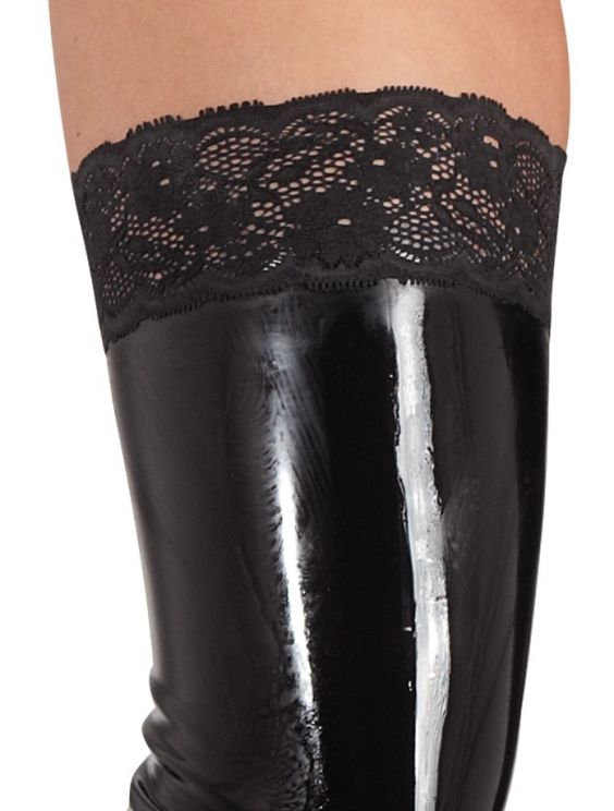 ZWARTE LATEX KOUSEN MET KANTEN BOORD